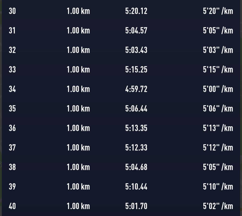 At 30K mark, I remined myself of the strategy again. Hold 5:04-5:07 zone till 40K mark!