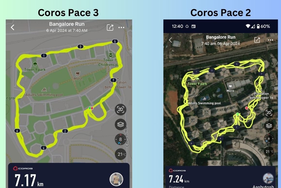 Below is a comparison of my run tracking using Pace 2 and Pace 3. You will notice how clean the lines are in Pace 3. The satellite mode for both watches was the same, and I had the watches on each wrist.