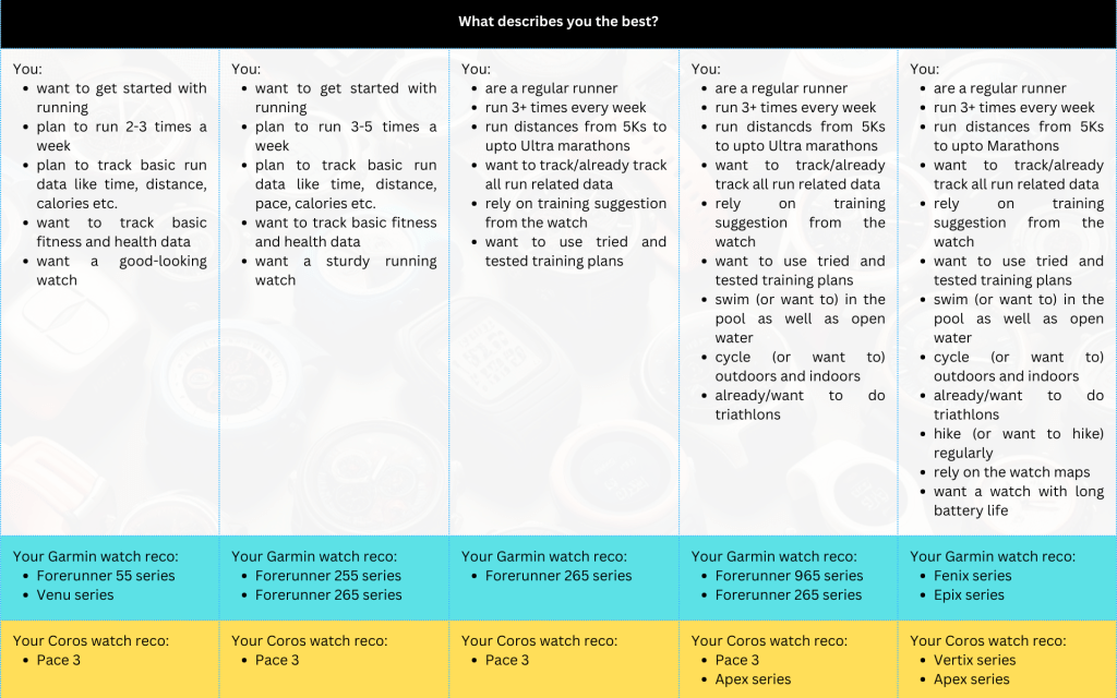 This inspired me to create a simple guide to help make a better decision. Garmin and Coros are the two brands currently available in India, so I will focus on their watch series. Their watch lineups, especially Garmin’s, are as complex as running shoe options.